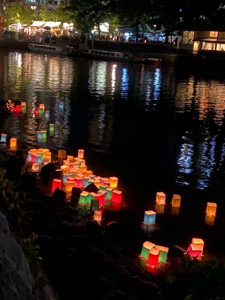 広島の犠牲者を慰霊し、恒久平和を願うために、毎年8月6日の夜、原爆ドーム前を流れる元安川で行われる。